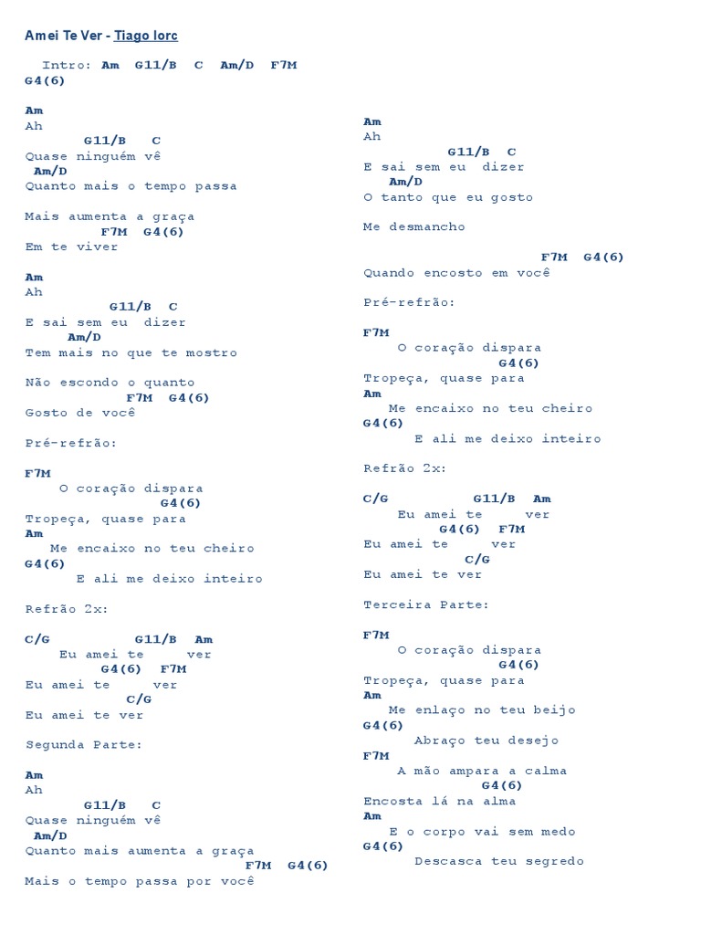 Amei Te Ver Cifra Simplificada : Corpo vai sem medo g4(6) descasca teu segredo f7m da boca sai: