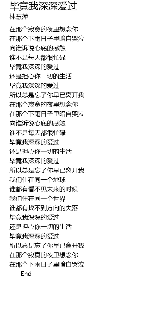 Bi Jing Shen Ai Guo / 毕竟深爱过 (bì jìng shēn ài guò).