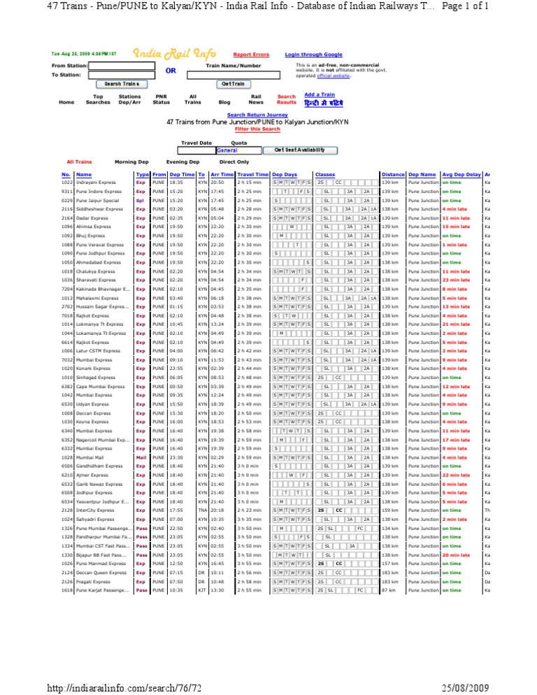 Karjat To Kalyan Train / Get confirmed indian railways reservation ticket today for your next train journey.