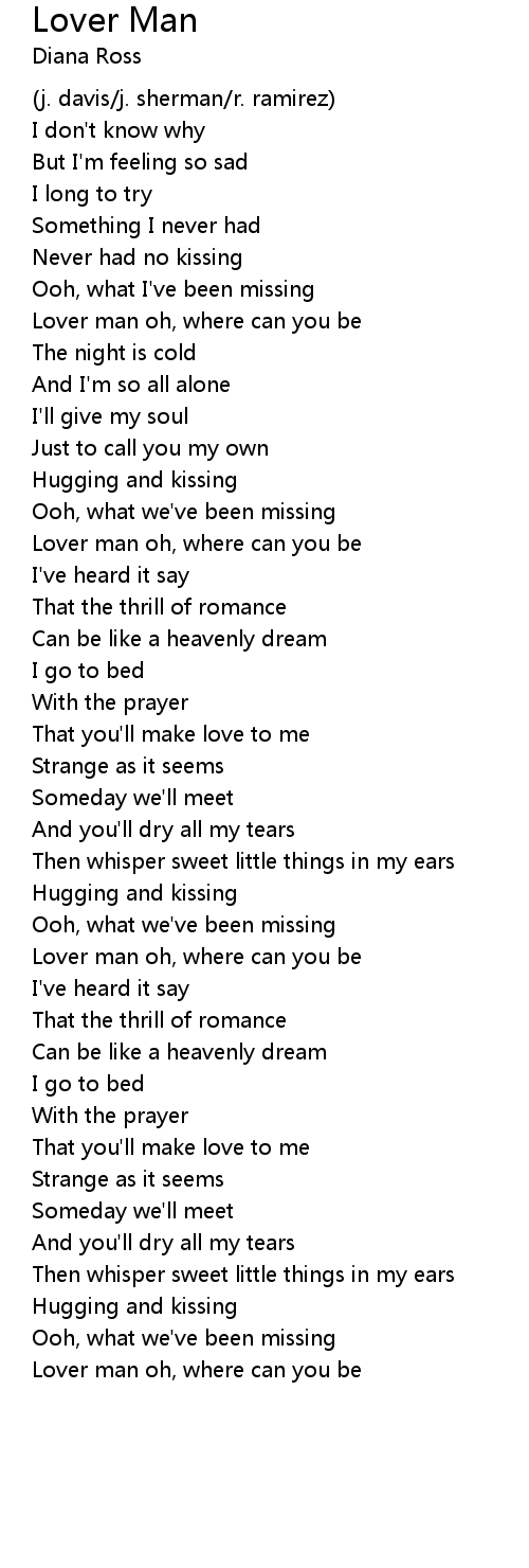 Lover Man Lyrics Follow Lyrics intro trrrroooo ozzy dililililioooo yeah ozzy yah yah yah yah yah yah yah yah yah mr loverman mami hon vill love me loverman är papi vill känna din body mot min, oh mami.