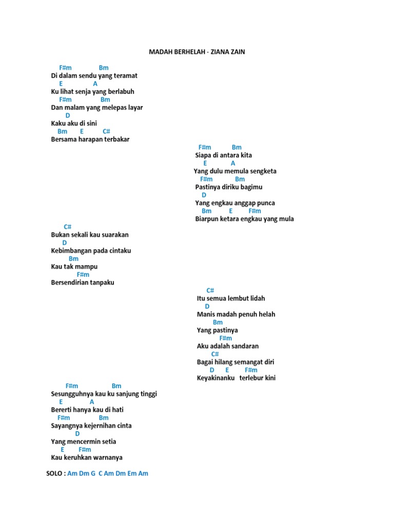 Madah Berhelah Chord - Lirik madah berhelah oleh ziana zain.