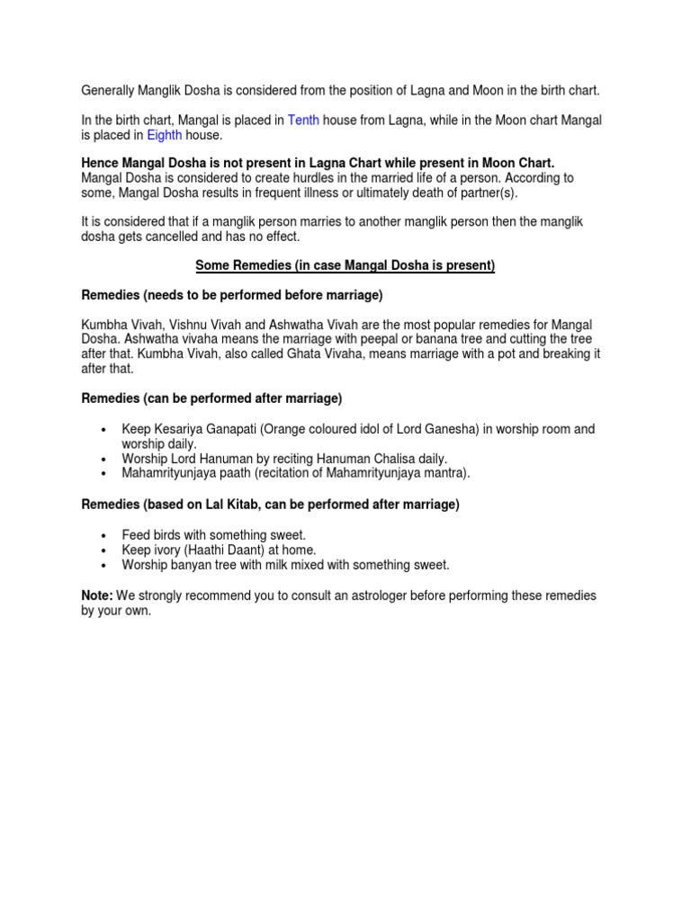 Mangal Dosha Remedies After Marriage - Hence, it is considered a very important planet in vedic astrology.