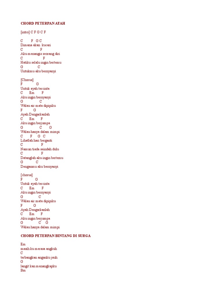 Peterpan Chord / Hatiku bimbang namun tetap pikirkanmu.