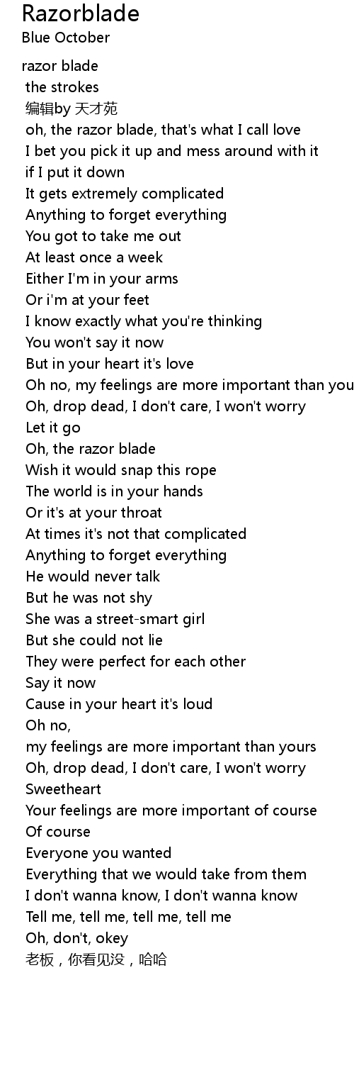 Razorblade Lyrics The Strokes Mojim Com Oh, the razor blade, wish it would snap this rope the world is in your hands or it's at your throat.