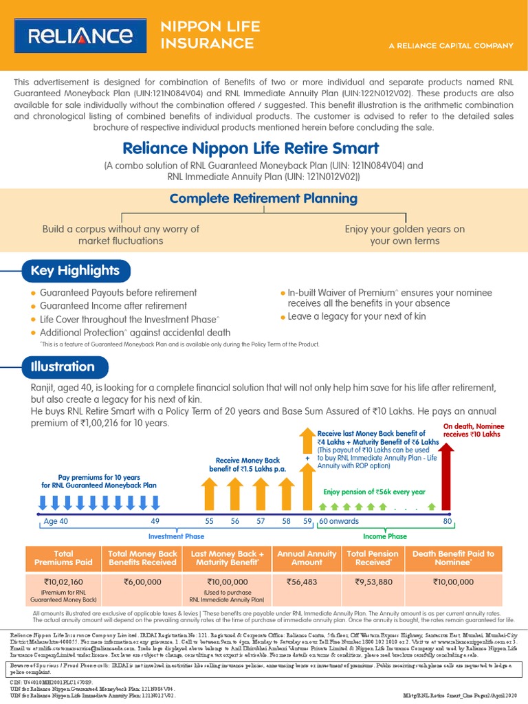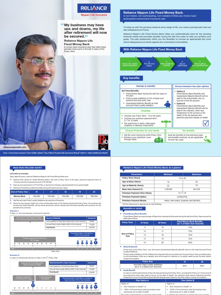 Reliance Guaranteed Money Back Plan : 09/12/2014 name of the insurance advisor :