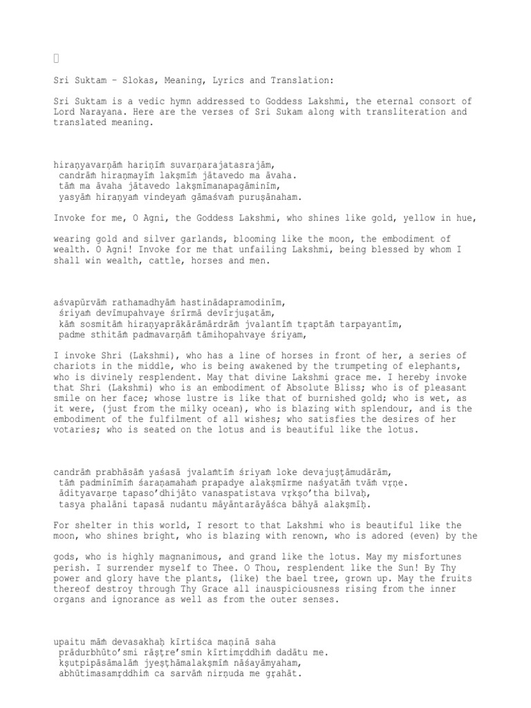 Shri Suktam Lyrics In Gujarati - Stotrams › deity › shakti › lakshmi › sri › sri sukta mahatmyam.