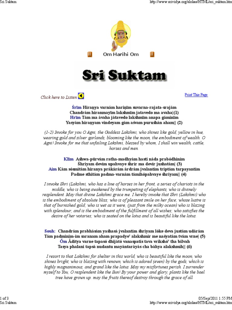 Sri Suktam Pdf Download Devi Stotrams Chant yesudas purusha suktam purusha suktam (satarudriyam) (pdf) rudram namakam chamakam s janaki gowri ashtotram s janaki trishati stotram siva panchakshari stotram by ms subbalaxmi siva panchakshari stotram by mangalampalli sivastuti sri ganeshaya dheemahi sri.